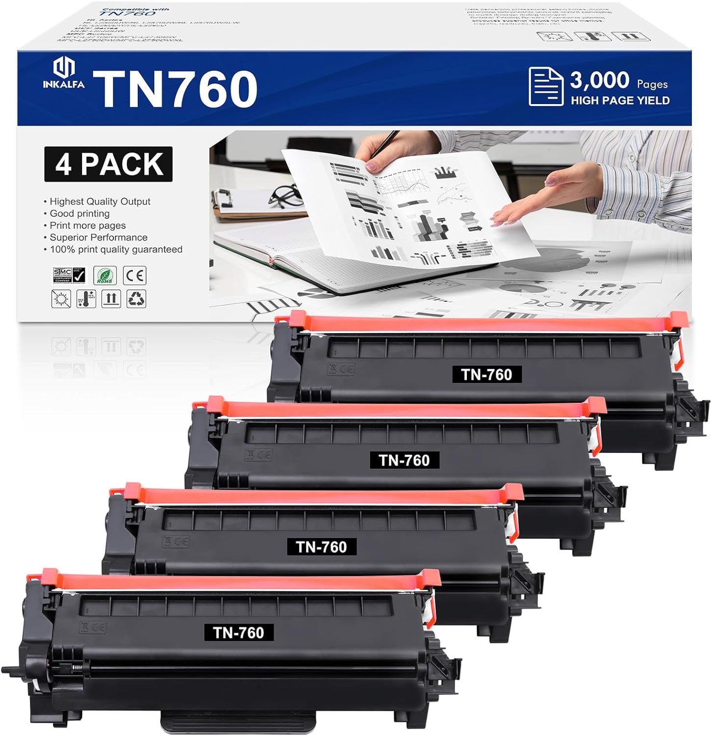 What's in the box: Inkalfa compatible toner cartridges replacement for Brother TN760 TN-760 toner cartridge black high yield and also compatible for Brother TN-730 TN730 toner -